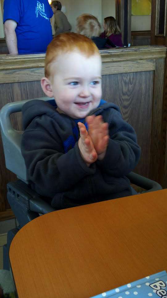 Zay excited to see Erin...or maybe he was excited for lunch...ok, he was actually excited because Erin was too sweet and brought him PRESENTS. What a spoiled little boy!